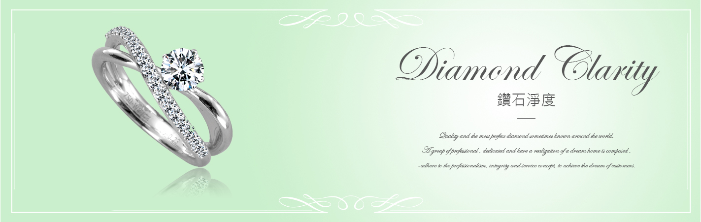 鑽石內外部的內含物(雜點、雲霧狀、羽毛狀裂痕…等),在經過鑑定專家以10倍放大鏡透視後,根據這些內含物的大小、數量、位置,區分出共11個等級,等級越後面表示內含物越多,這些內含物主要會影響光線折射。